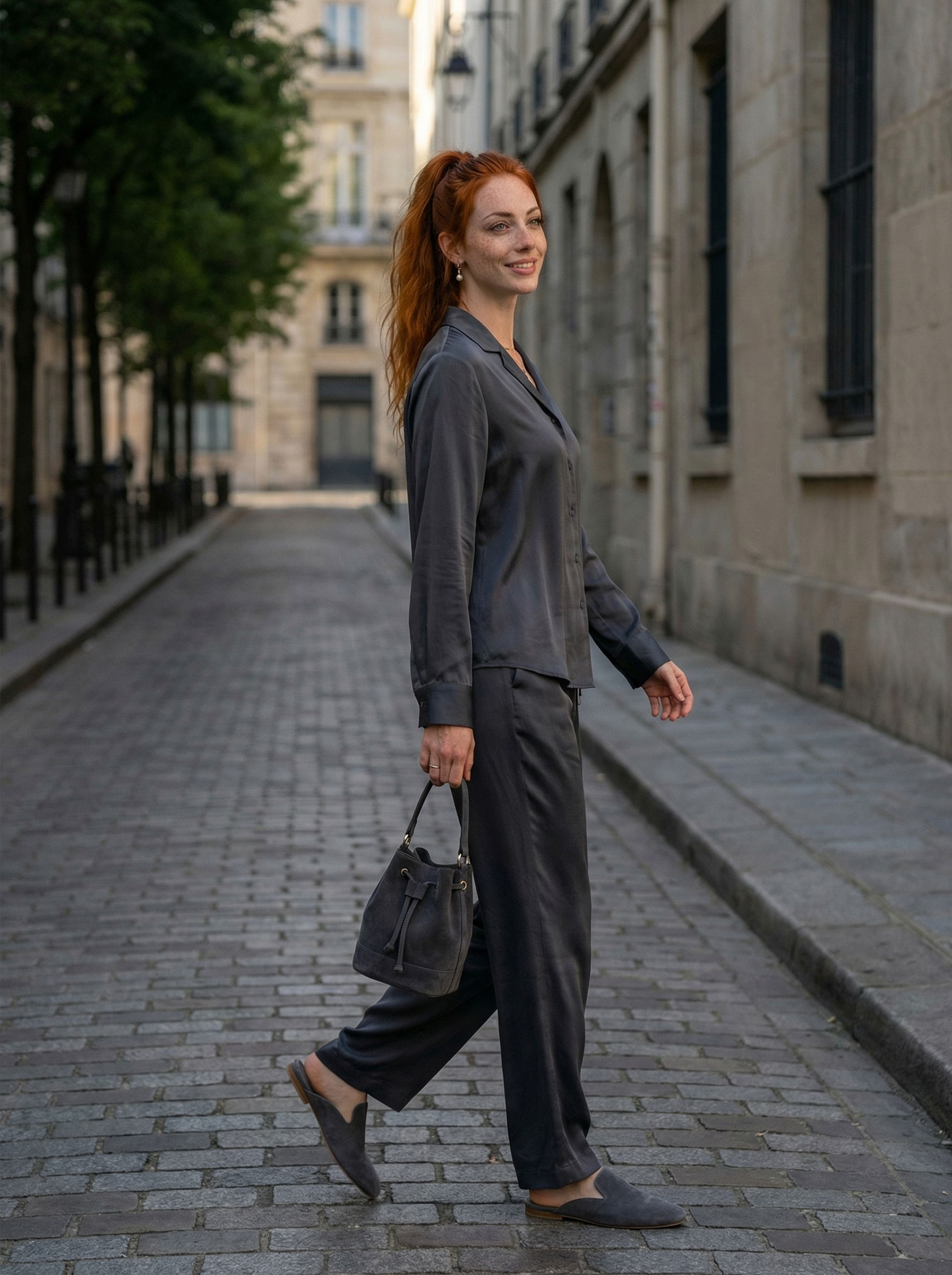 Премиальный материал, свободный крой, комфорт для длительного ношения. Рассчитана на сочетание с мьюлями.