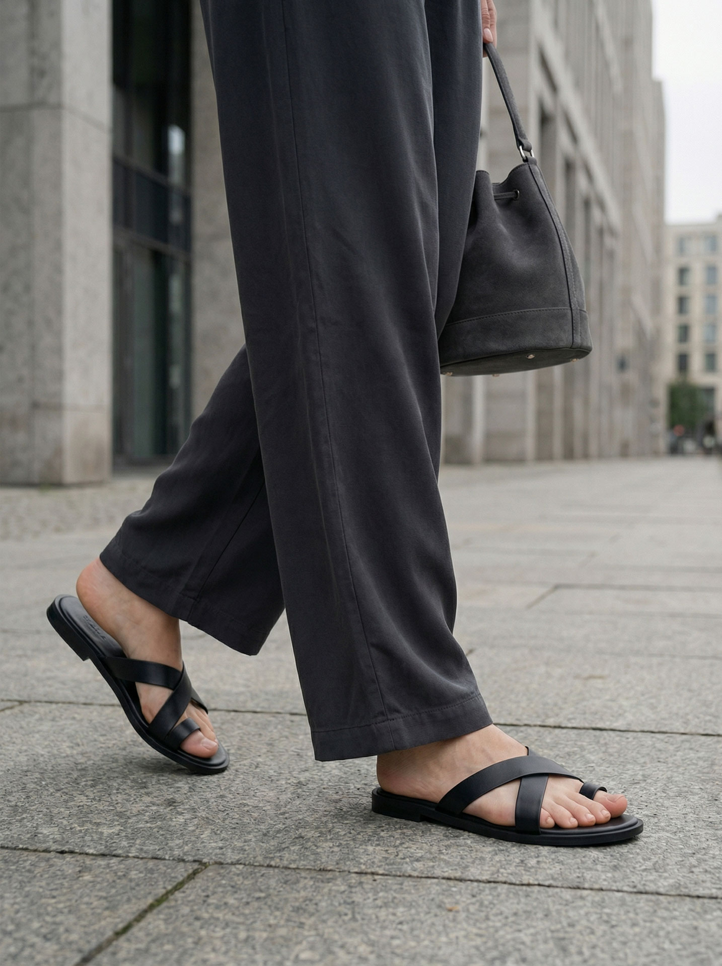 Открытые мьюли Max Sharun — это баланс между расслабленностью и собранным стилем. Фиксация большого пальца (toe loop) обеспечивает устойчивую посадку и ощущение контроля при ходьбе, при этом стопа остаётся визуально лёгкой и открытой. Верх выполнен из полосок натуральной кожи с износостойким покрытием — материал мягкий, но держит форму и хорошо ведёт себя при ежедневном использовании. Эта модель создана для движения: дома, в городе, в путешествии — без ощущения «обуви на выход», но с аккуратным, продуманным силуэтом. Мьюли легко сочетаются с пижамами, расслабленными городскими образами и минималистичной одеждой, оставаясь вне сезонных трендов.